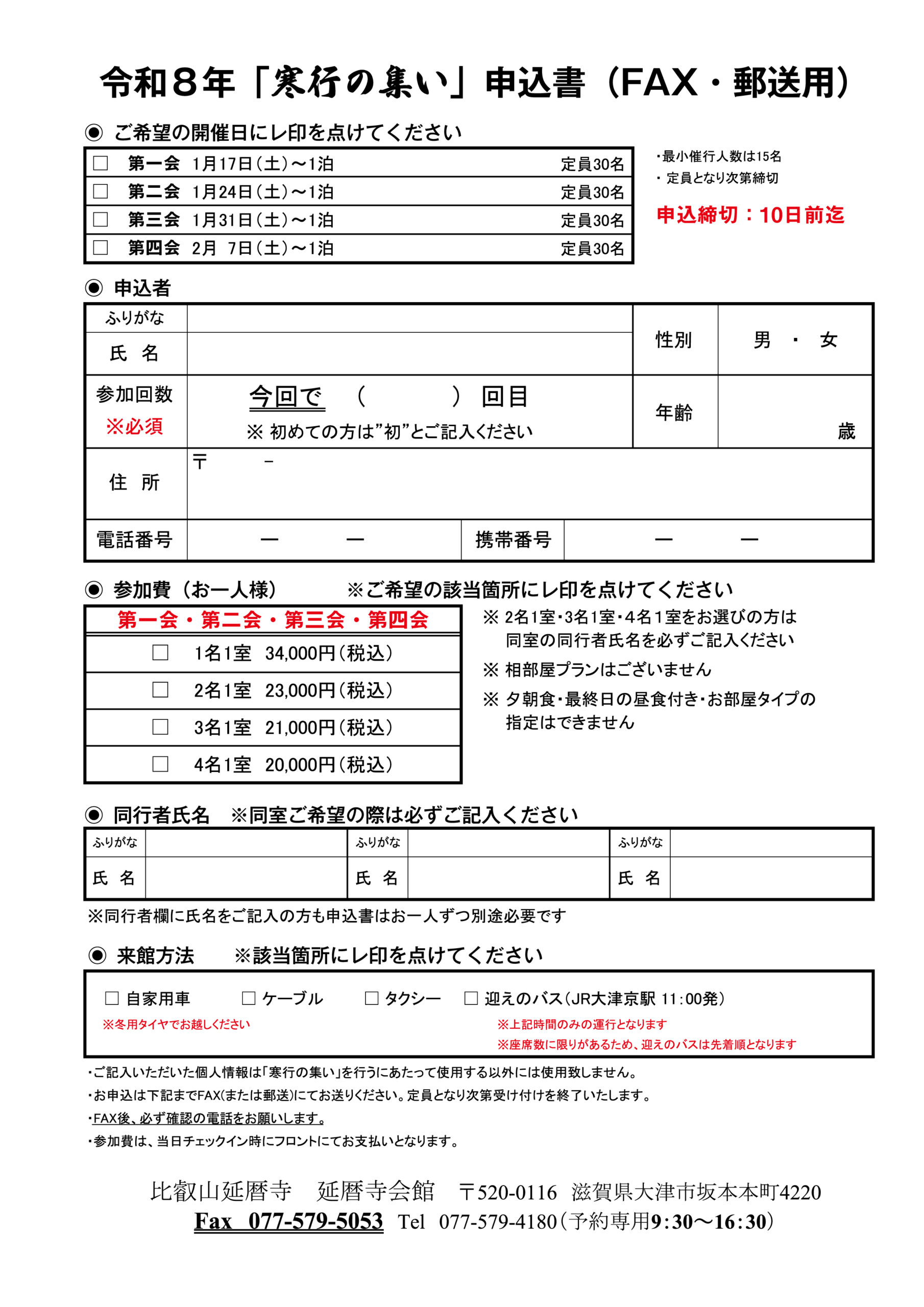 ※ご記入いただいた個人情報は「寒行の集い」を行うにあたって使用する以外には使用いたしません。